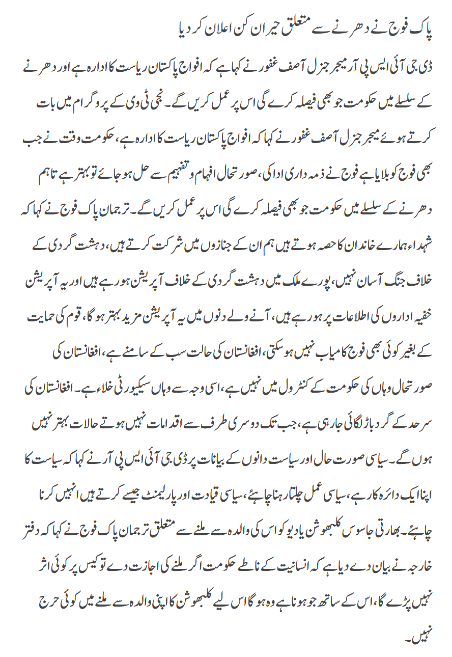 pakistanPakistan army Pak Foj Ka Dharnay Per Bayan On نومبر 23, 2017 Share FacebookTwitterWhatsAppEmail
